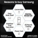 Samsung Exclusive Features : Convertible | Digital Display with Easy Touch Control | Power Cool | Fresh room | Easy Slide Shelf | All Round Cooling
