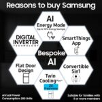 Samsung Exclusive Features : AI Energy Mode | Control with your Phone | SmartThings | Convertible 5-in-1 | Twin Cooling Plus | Fresh Room | Power Freeze | Power Cool