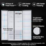 8 reviews for Samsung 653 L, 3 Star, Frost Free, Double Door, Convertible 5-in-1 Digital Inverter, Side By Side AI Enabled Smart Refrigerator with WiFi (RS76CG8003S9HL, Silver, Refined Inox)