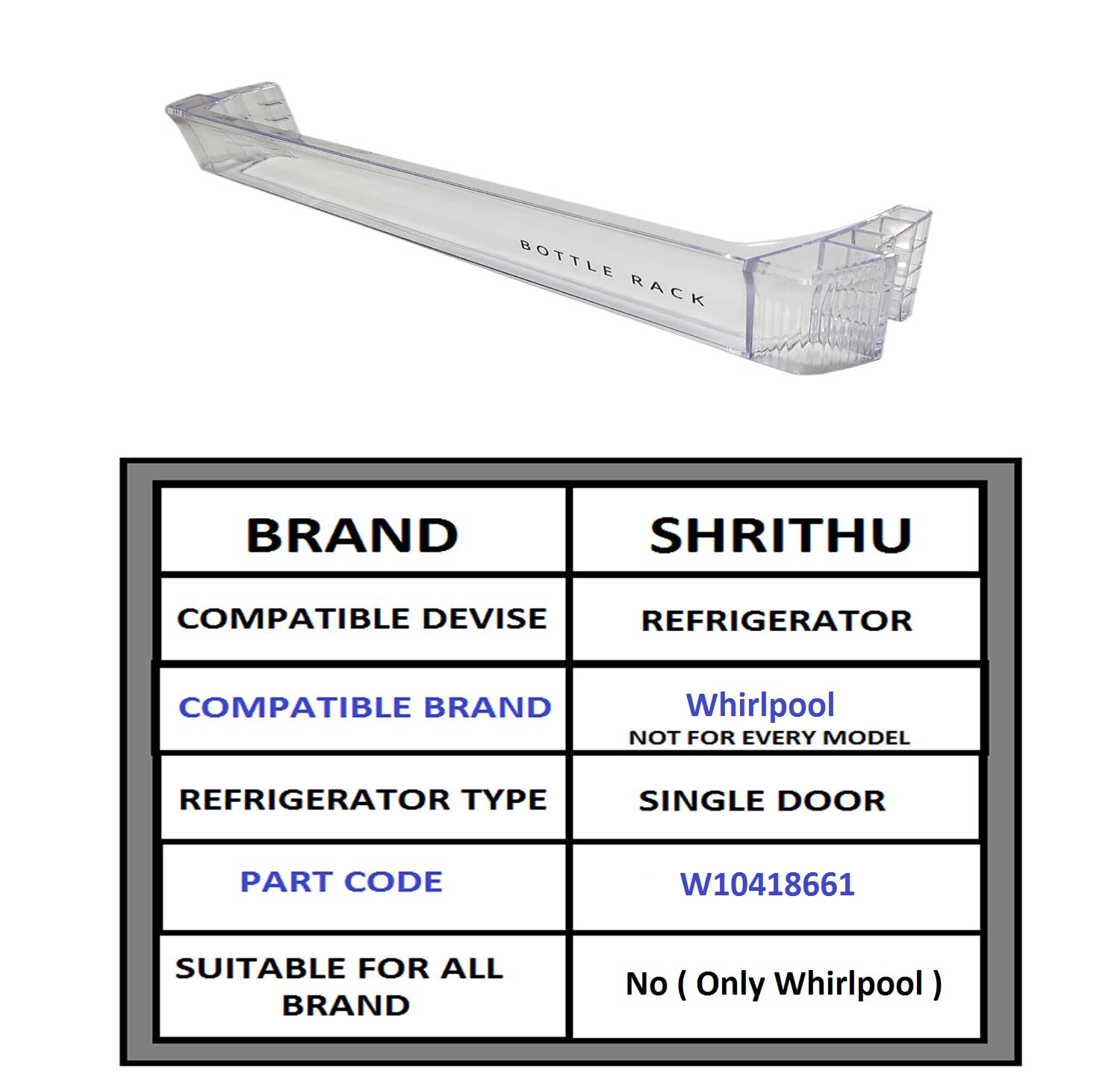 SHRITHU Bottle Shelf For Fridge Compatible With Whirlpool Single Door Refrigerator Bottle Rack Holder Color Clear Pack Of 1 Part Code W10418661