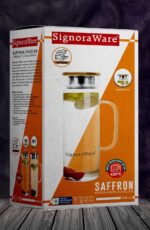 Material Description: Dimension : 9cm x 9cm x 24.5cm| Capacity : 1 Ltr | The Signoraware Borosilicate glass jug is crafted from high-quality borosilicate glass, known for its durability and resistance to thermal shock. This allows the jug to safely handle both hot and cold beverages. The lid is likely made of steel, as indicated in the product name, ensuring a secure fit.