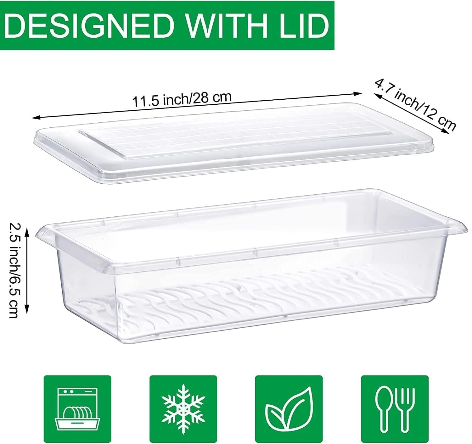 Skylike MULTIPURPOSE USE: Fridge storage boxes can be used for storing vegetables fruits meat fish left over food etc. Or can be used to store dry ingredients in the kitchen in the storing racks. Fridge organizer lid prevent from various odor in the refrigerator.