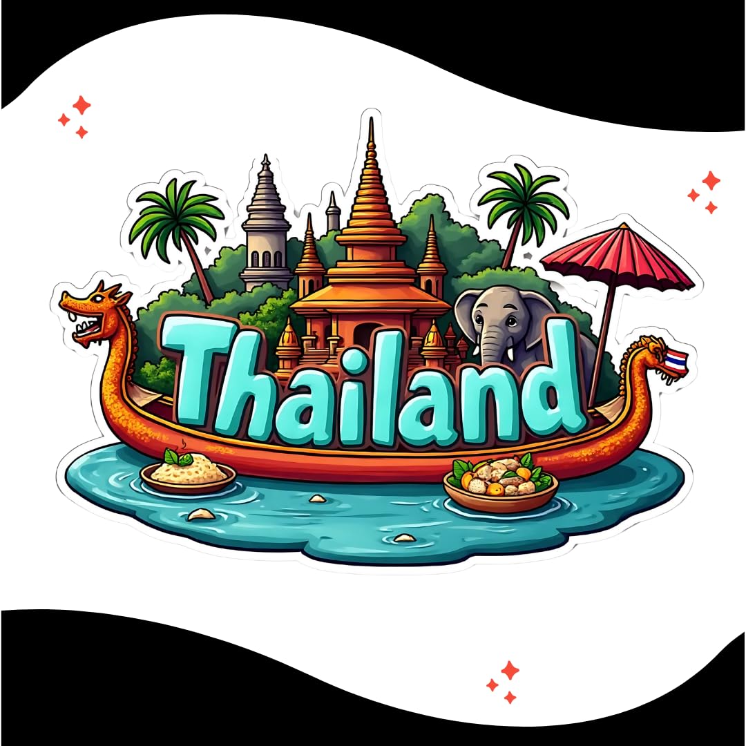 Iconic Thai Design: Featuring symbols like golden temples, elephants, traditional Thai patterns, tropical beaches, and more, this magnet beautifully represents Thailand’s rich cultural history, exotic landscapes, and warm hospitality.