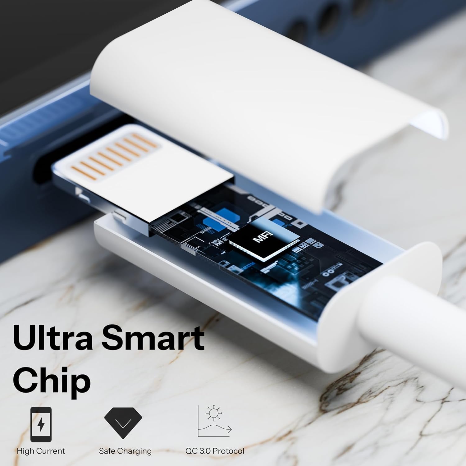 MFi Certified: Ensures the cable is made to meet Apple’s standards for compatibility and performance, preventing compatibility issues.