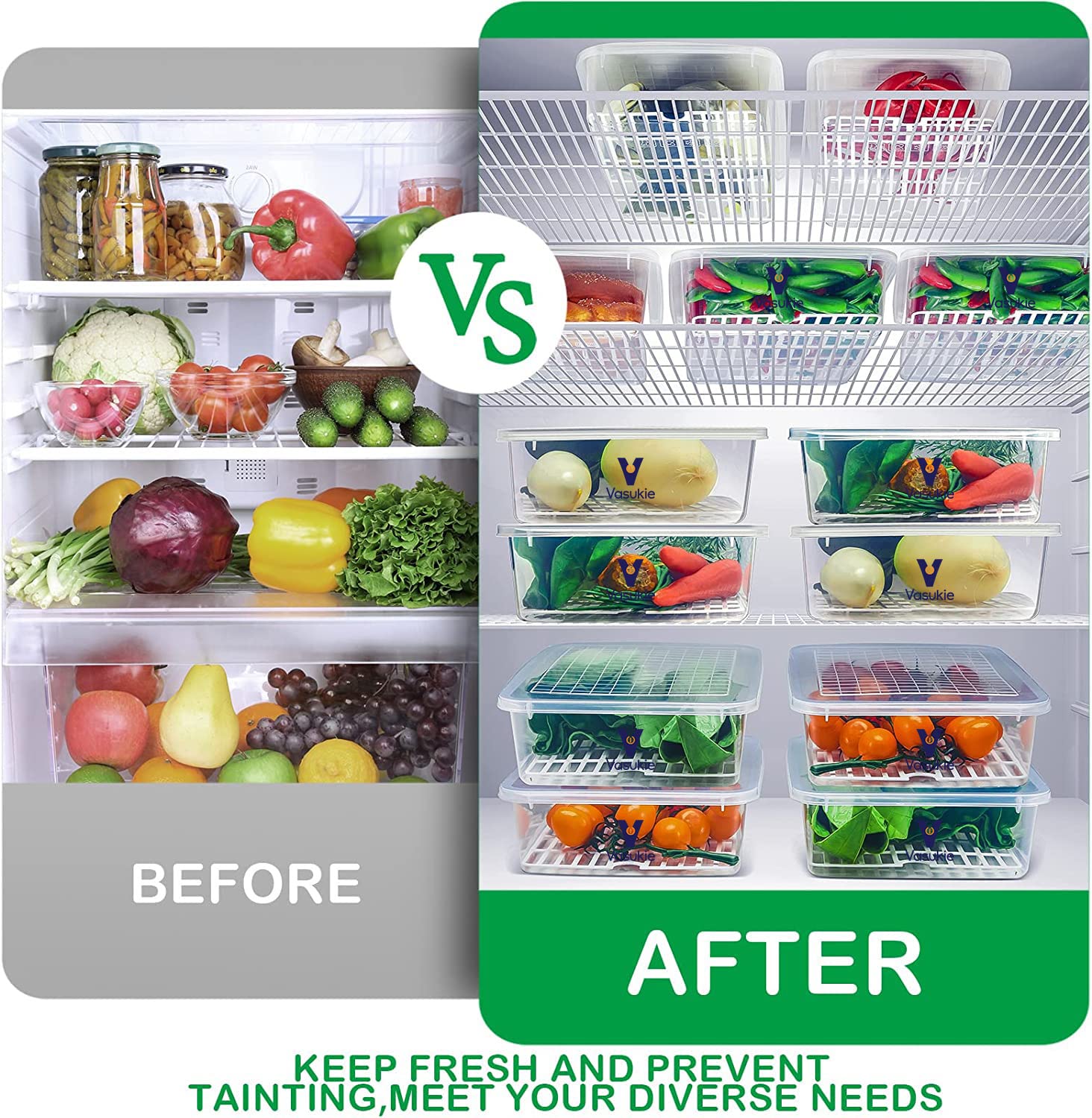 Water Filter Tray: The fridge storage containers with removable drain plate, keep fruits, vegetables, meat, fish out of the drippings. Effective to prevent bacterial growth.