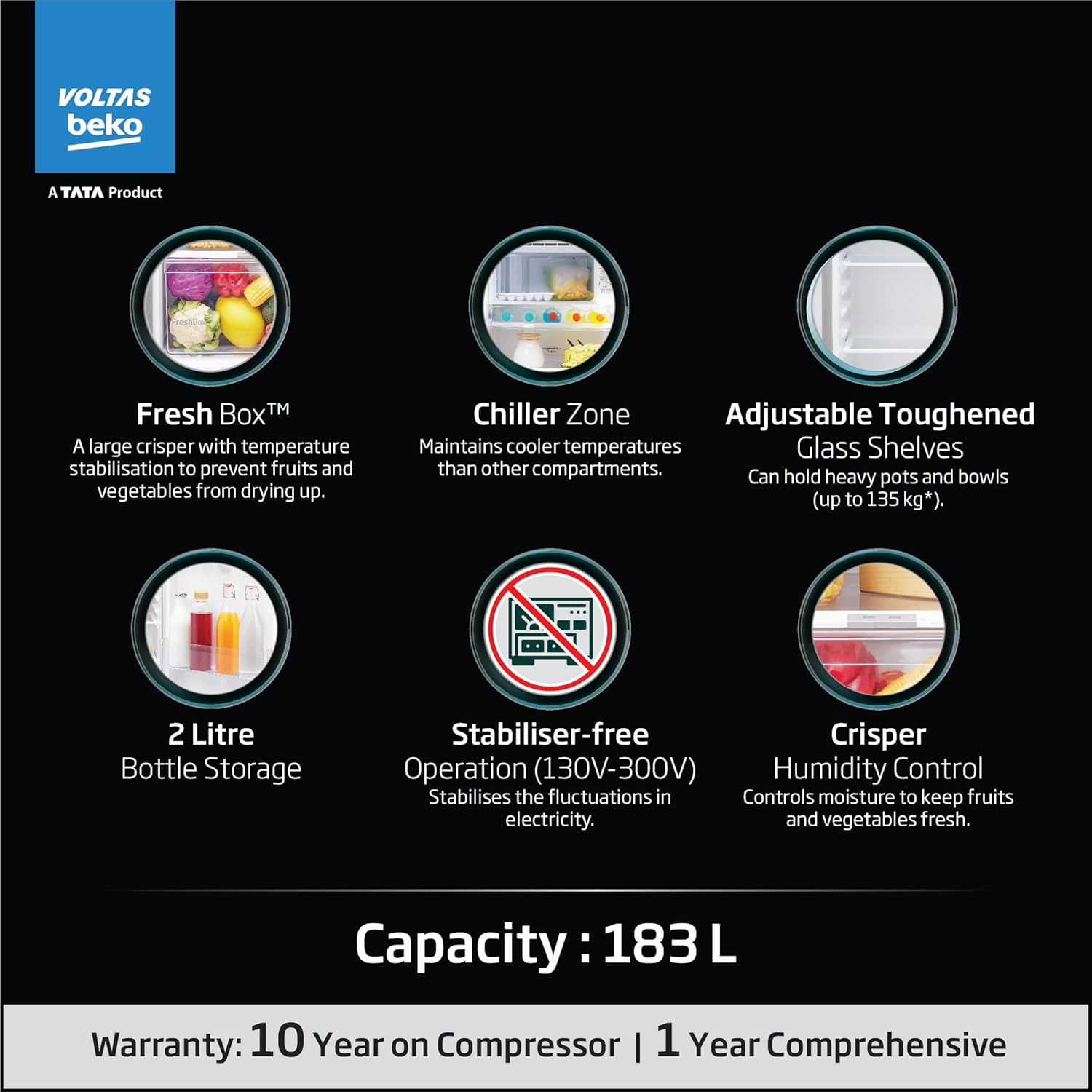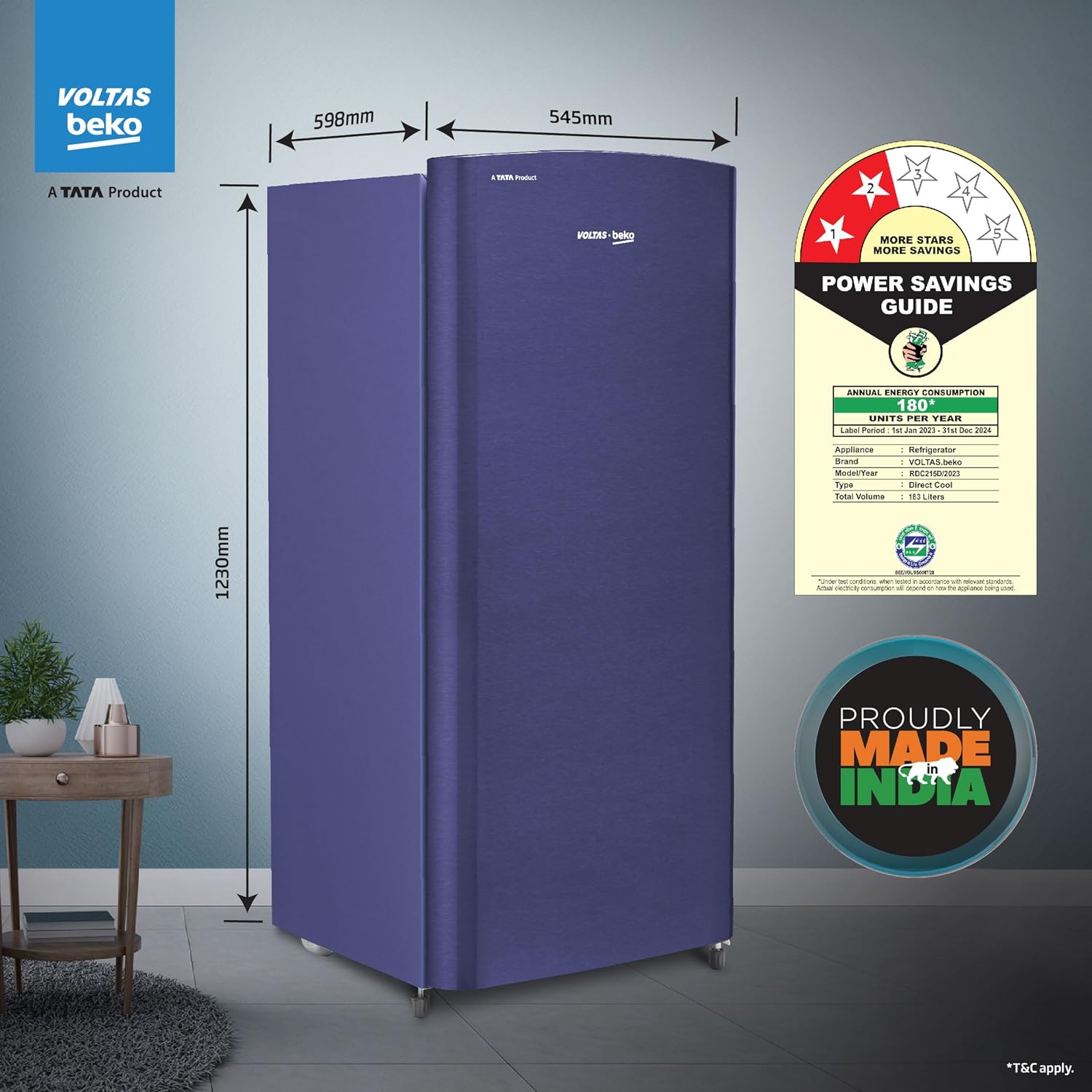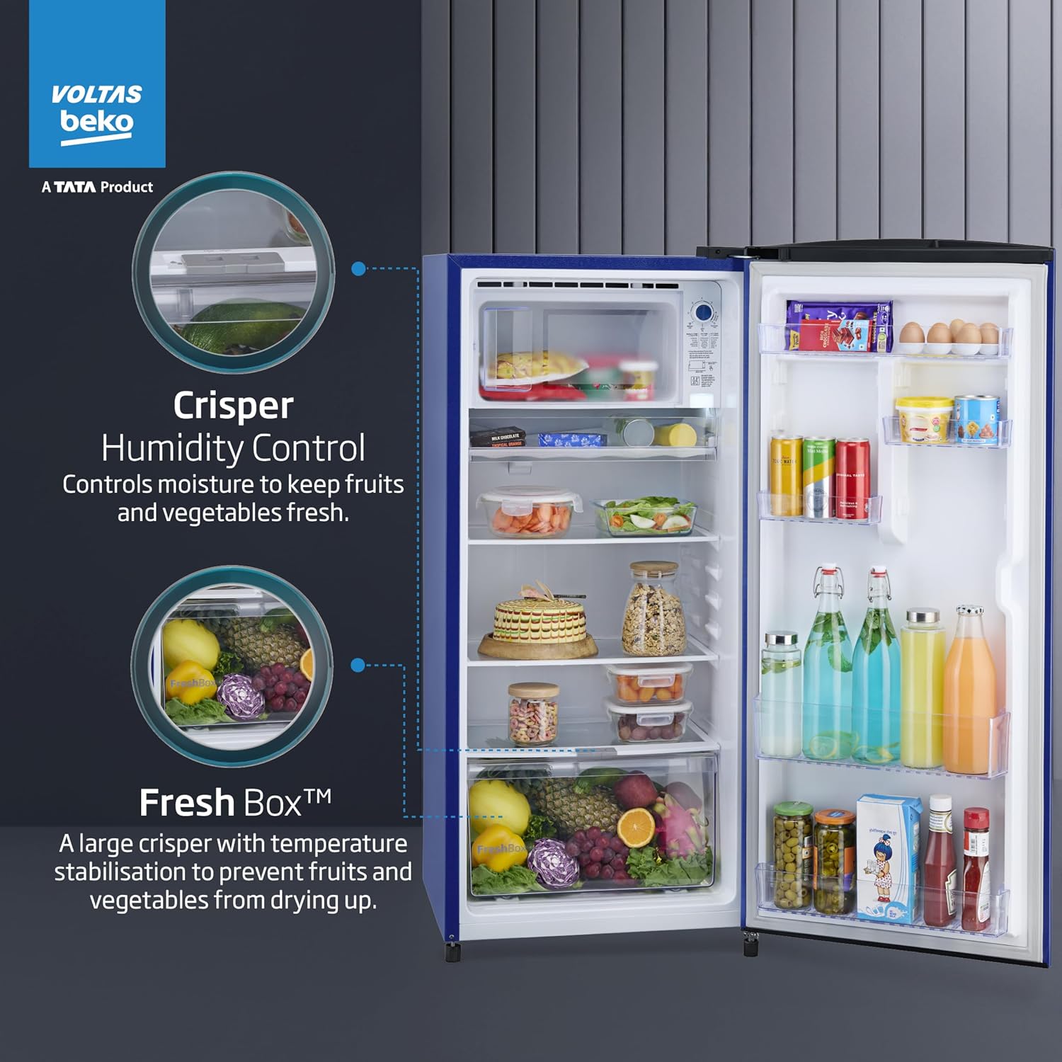 Voltas Beko, A Tata Product 183 L 2 Star Direct Cool Single Door Refrigerator (RDC215D/S0XER0M0000GO, Hairline Blue, With Fresh Box Technology and Chiller Zone, Stella blue)