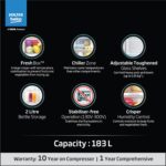 Special Features : Fresh Box with Crisper Humidity Controller, Chiller Zone, FlexLift Door Shelf, 2 L Bottle Storage.