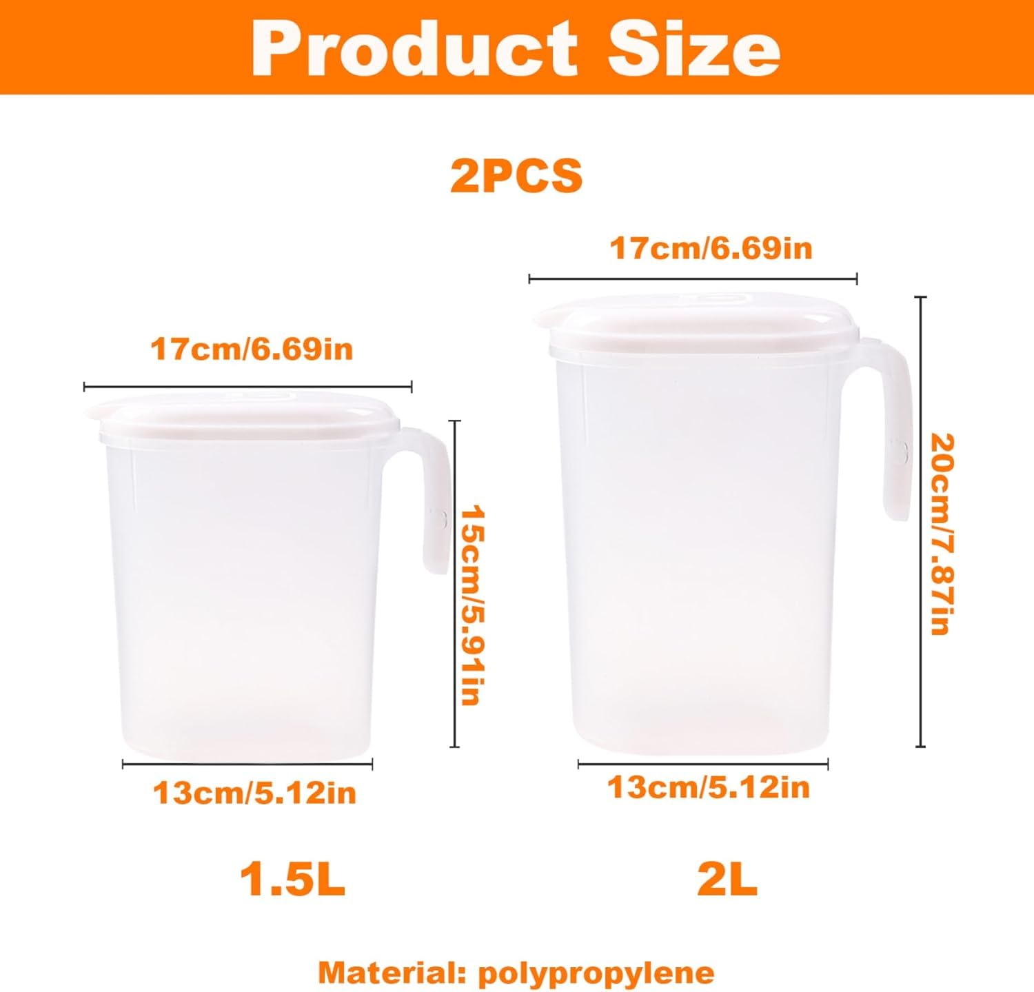 DUAL CAPACITY: Set includes two water pitchers – a compact 1.6L jug and a larger 2.2L pitcher, perfect for different storage needs