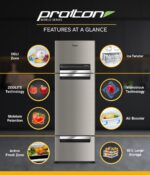 Protton’s unique 3 door format offers benefits that no other refrigerator in it’s class has. It provides the largest* 32 L fruits and vegetables storage space, prevents odour mixing and ensures better cooling@ retention owing to 3 separate zones for different storage needs.